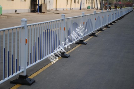道路隔離柵欄的顏色主要是藍(lán)色、白色、黑色;