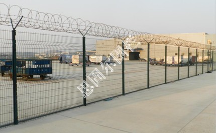 飛機(jī)場圍欄又稱作“Y型安全防御護(hù)網(wǎng)”,是由V型支架立柱,加強(qiáng)型焊接片網(wǎng),安全防盜連接件和熱鍍鋅刀片刺籠組成強(qiáng)度和安全防御性級別很高。近年來,被廣泛應(yīng)用在機(jī)場,軍事基地等高安全場所。