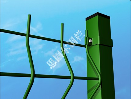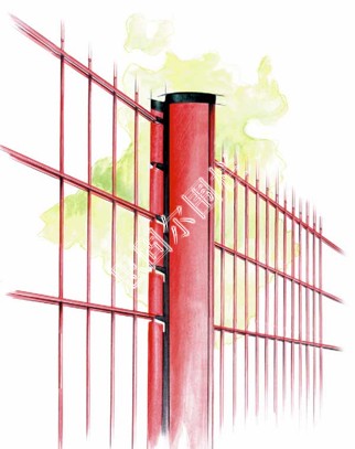2.方形管立柱---方管兩側(cè)焊有用扁鐵沖壓的護欄網(wǎng)連接附件、立柱底部焊有法蘭盤、以便固定立柱。用于:雙邊絲護欄網(wǎng)、框架護欄網(wǎng)。