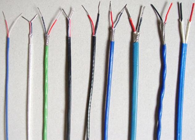 SC或RC | 銅 - 銅鎳 0.6 補償型導線 | 鉑銠 10- 鉑熱電偶 | S或R | S- 表示熱電特性允差為精密級補償導線; P- 表示有屏蔽層的補償導線; G- 表示一般用補償導線; V- 聚氯乙烯材料( PVC ); H- 表示耐熱用補償導線; F- 聚四氟乙烯材料; R- 表示多股補償導線; B- 無堿玻璃絲材料 |