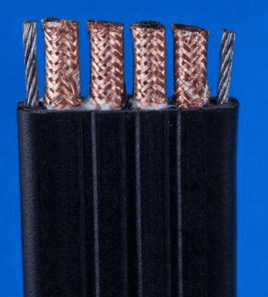 YVFRPB | 耐磨耐油丁腈彈性體絕緣和護套銅編織屏蔽電力軟扁電纜 |