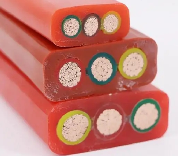 扁電纜YFGCB-3*50絕緣和護(hù)套等采用硅橡膠材料。來(lái)提高電纜柔軟特性及防腐耐寒等性能。可按顧客需要,在線芯兩側(cè)增加鋼絲繩或其他承力元件。