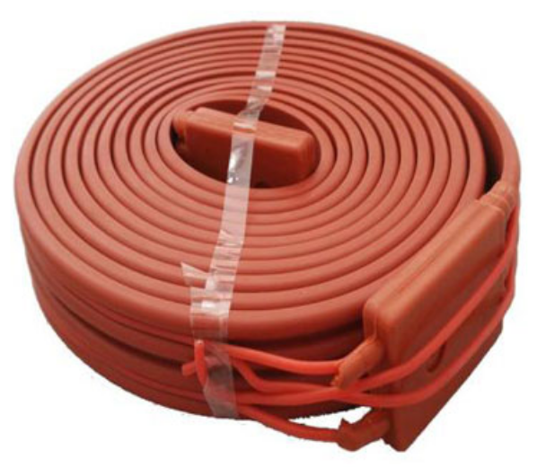 管道用硅橡膠加熱電纜主要用于短距離的液體管道保溫,因其防水性很好,所以多被用于潮濕的環境。也可用于電機、水泵、壓縮機等設備的輔助加熱。硅橡膠的柔軟性很好,彎曲度大,故又稱為柔性電熱帶。