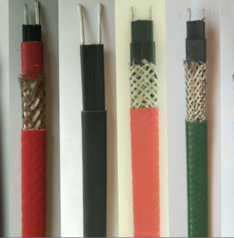 電源母線為二根平行絕緣銅線。在絕緣層中間纏繞電熱絲,并將該電熱絲每隔一定距離(即“發熱節長”)與母線連接,形成連續并聯電阻。母線通電后,各并聯電阻發熱,因而形成一條連續的加熱帶。