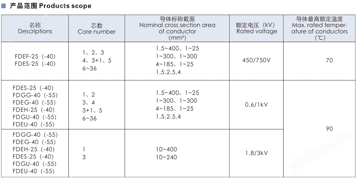 2、電纜Z高工作溫度:450V/750V-70℃,0.6/1kV-90℃,1.8/3kV-90℃。