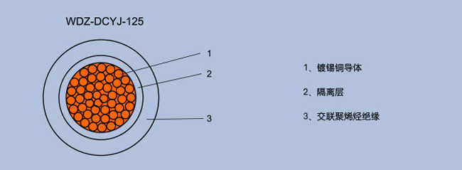 | 1 | WDZ-DCYJ-125 | 500V、750V、1kV、1.5kV、3kV | 銅芯耐熱125℃交聯聚烯烴絕緣無鹵低煙阻燃機車車輛用電纜 |