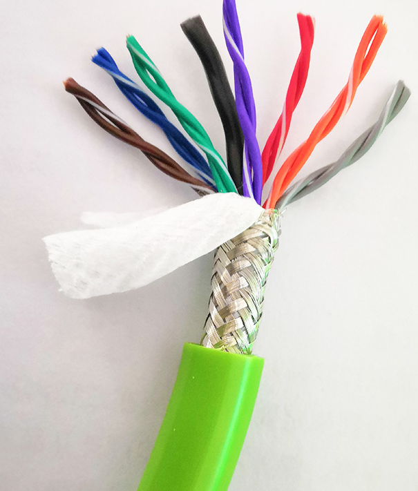 屏蔽拖鏈電纜TRVUSP-4*2*0.5專為需要高度彎折彎曲連續運動應用場合而設計并廣泛用于:拖鏈系統、機器人和移動驅動系統等。PUR護套材料耐磨、防水解、抗菌、阻燃等特性,