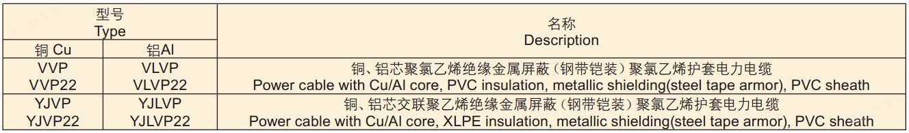VV22P型 、VLV22P型電纜外徑分別在VV22型、VLV22型電纜外徑的基礎上增加1~1.5mm。