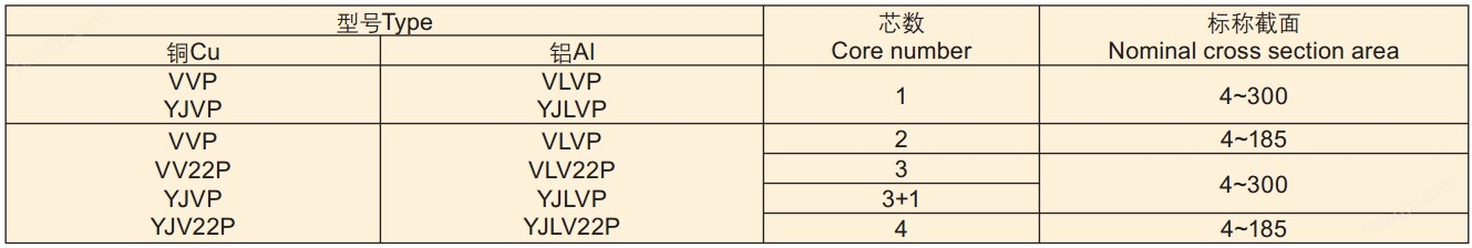 YJ V P型 、YJ LV P 型電纜外徑分別在YJ V 型、YJ LV型電纜外徑的基礎上增加1~1.5mm。