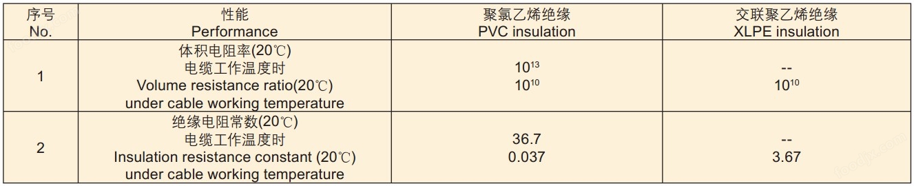 1、20℃時導體直流電阻參見0.6/1KV 聚氯乙烯絕緣及護套電力電纜。