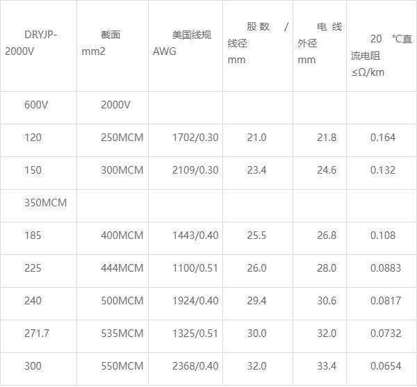 名稱:DRYJP-2000V 1x271mm2 P 535MCM 交流2000v及以下石油平臺鉆井屏蔽電纜