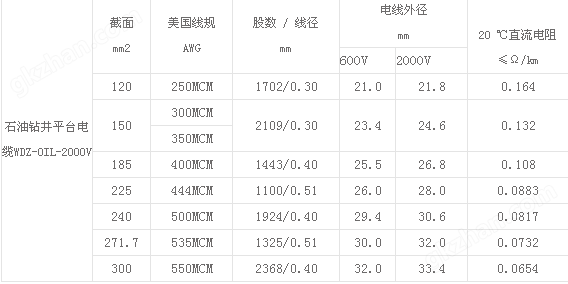 石油鉆井平臺WDZ-0IL-500MCM一,石油鉆井平臺WDZ-0IL-500MCM主要適用額定電壓2kV及以下的石油平臺鉆井架上大功率電機、壓縮機及各種泵類的電力傳輸系統及船舶動力系統.電纜具有良